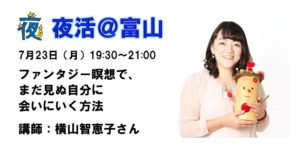 【夜活】7月23日(月) ファンタジー瞑想で、まだ見ぬ自分に会いにいく方法 日時 2018-07-23 19:30 ~21:00 (19:15受付開始) 会場 ゴールドカレー富山豊田店(富山市豊田町1丁目12-21) 参加費 1500円 講師 手づくりの小さなショップHeartAngel 代表 横山智恵子 さん