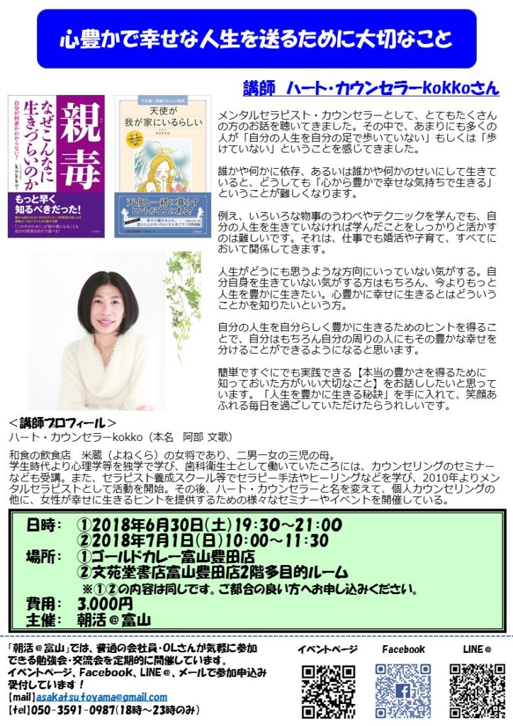 (ハート・カウンセラーkokko 阿部文歌さん)開催します。